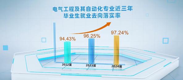 就业好,好就业,是王牌专业核心竞争力。如电气工程及其自动化专业近三年就业去向落实率超97%,高质量就业占比达32.26%。毕业生多就职于国家电网、发电集团、新能源龙头及轨道交通领域,从事研发与管理岗位,平均薪酬普遍过万。