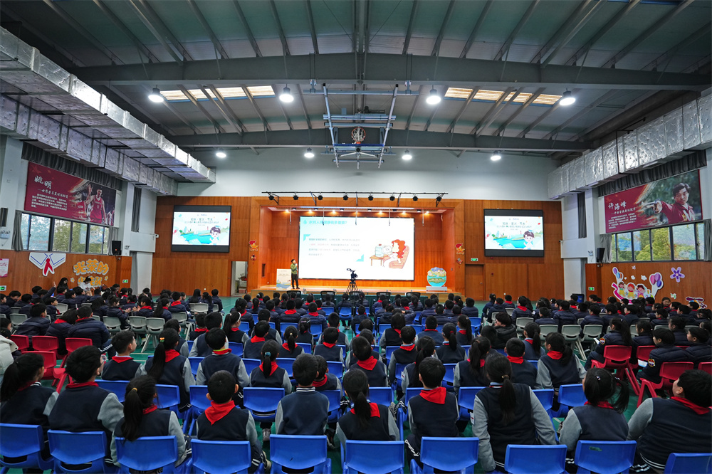 在随后的水教育课堂环节中,康康学长通过生动的科普讲解与互动问答,带领学生了解水资源分布、科学饮水常识以及日常节水方法。学生们还分组参与趣味互动游戏环节,通过团队协作完成节水主题挑战。这一寓教于乐的形式不仅提升了同学们的参与热情,也让节水护水的理念在实践中得到强化。不仅激发了学生的创造力,更在潜移默化中在青少年儿童心中根植护水爱水的绿色种子。
